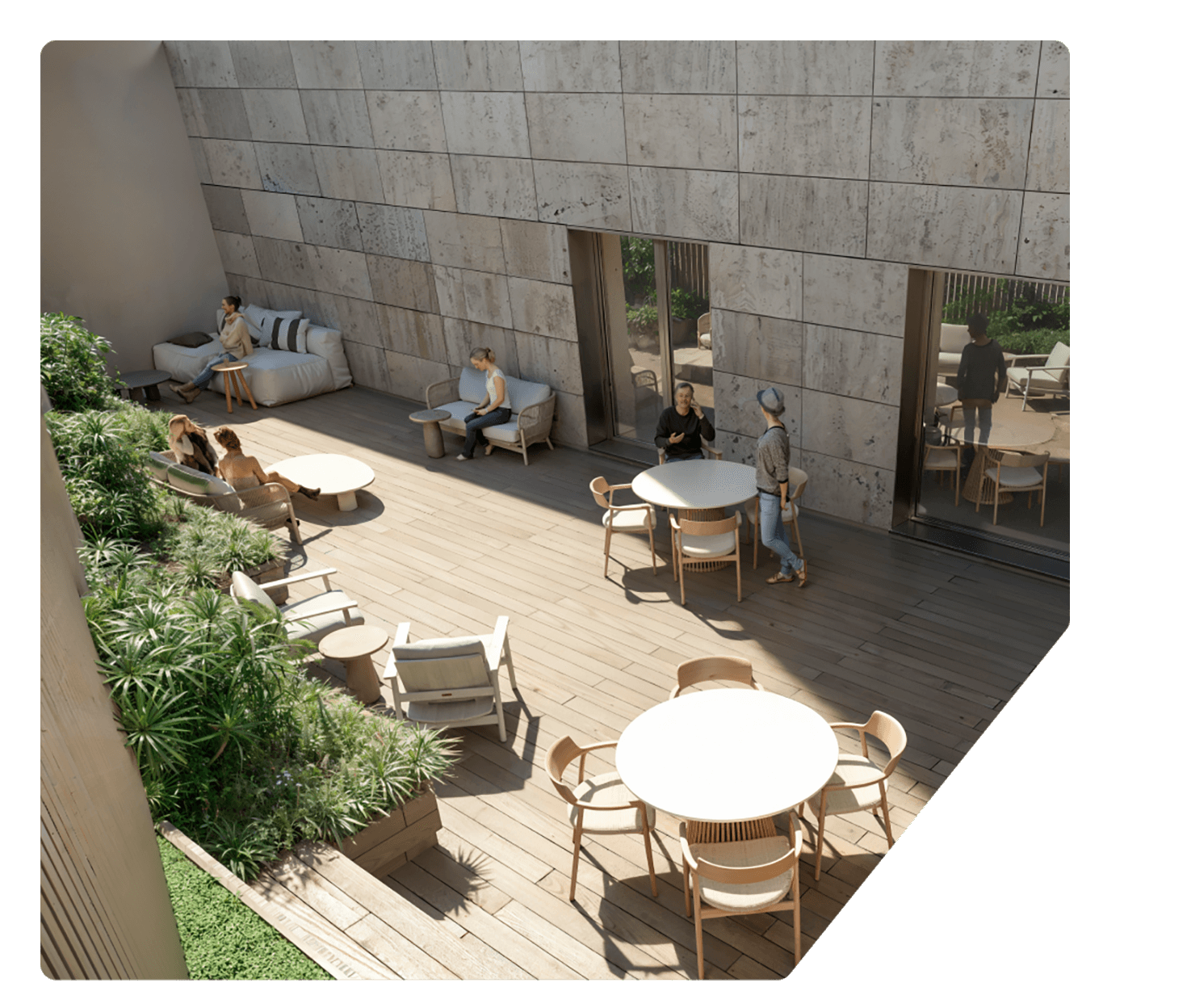 D.575 towers 10 stories above L’illa and is the highest module in the complex. With 18.328 m2 of best-in-class workspace and a privileged corner position, it is the ideal office or headquarters location. Fully renovated in 2025 to an exceptional standard, D.575 offers open-plan floors ranging from 1,500 m2 to 3,000 m2. Floors 5 and 6 now feature exclusive private terraces overlooking the gardens.